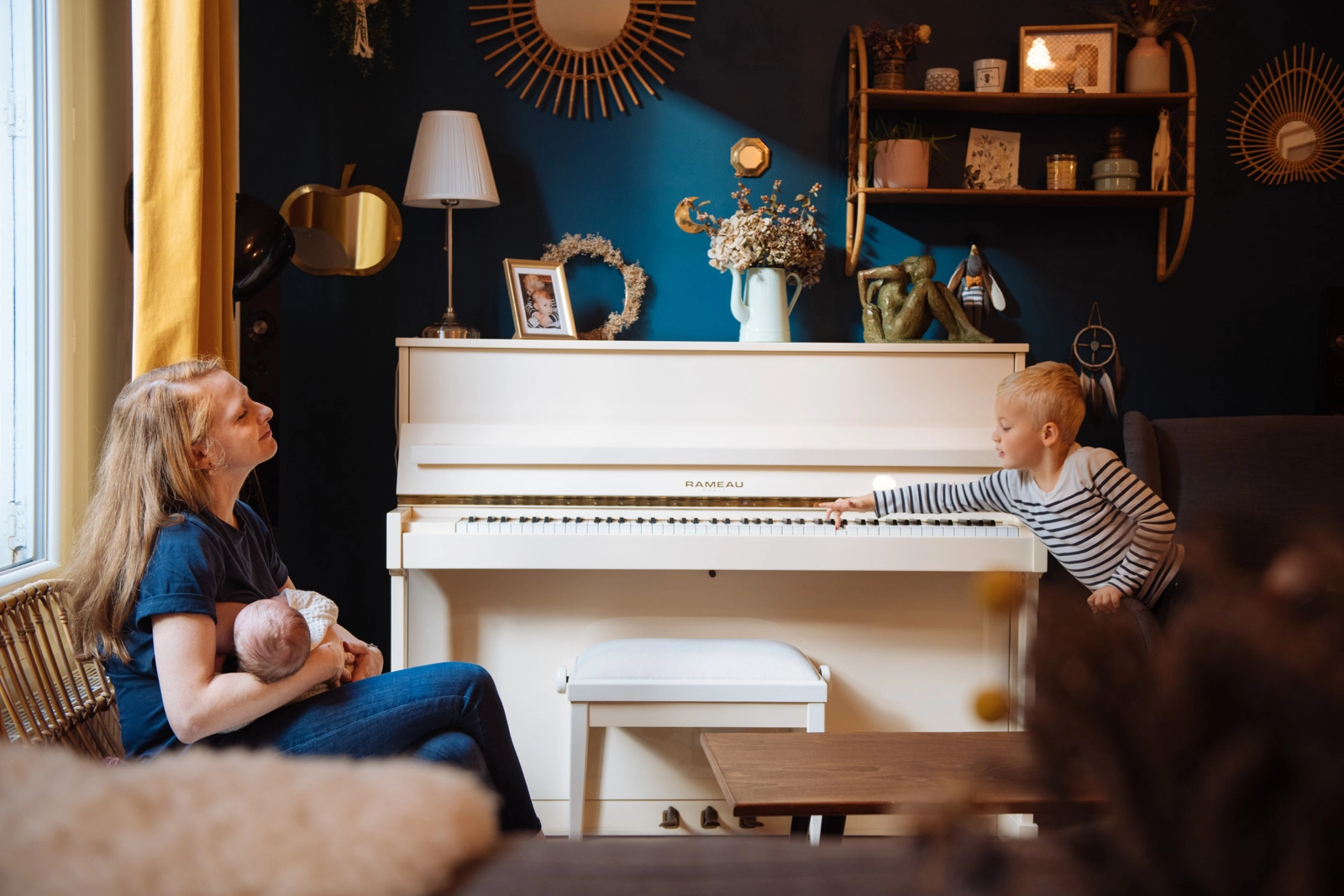 Dans votre cocon, là où votre histoire se vit au quotidien. Un cadre intime, doux et rassurant, particulièrement adapté aux séances grossesse et naissance.